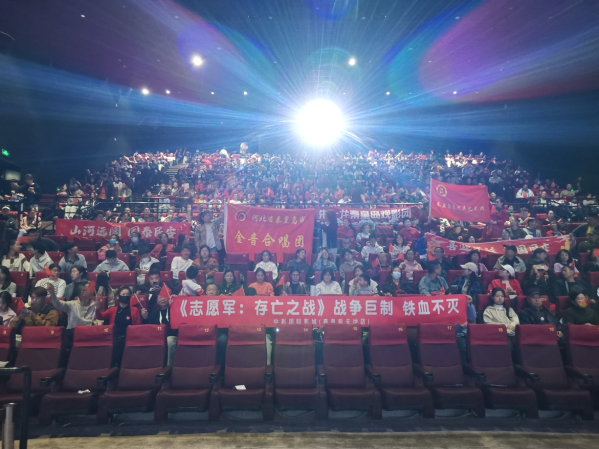 活动当天,观众怀着期待的心情陆续来到中影国际影城。入口处,工作人员热情地为每一位观众发放小红旗,现场一片火红,洋溢着热烈的节日气息。此次活动还得到了片方的大力支持,片方为观众准备了精美的纪念品,让大家在观影之余,也能留下一份美好的回忆。感谢朱一龙秦皇岛观影团。在电影开场前,全体观众进行了一场震撼人心的大合唱--《英雄赞歌》。“为什么战旗美如画,英雄的鲜血染红了它,为什么大地春常在,英雄的生命开鲜花。”激昂的旋律在影厅内回荡,大家齐声高唱爱国歌曲,用嘹亮的歌声表达对祖国的热爱和对志愿军英雄们的敬意。这一刻,每个人的心中都充满了激情与感动。
